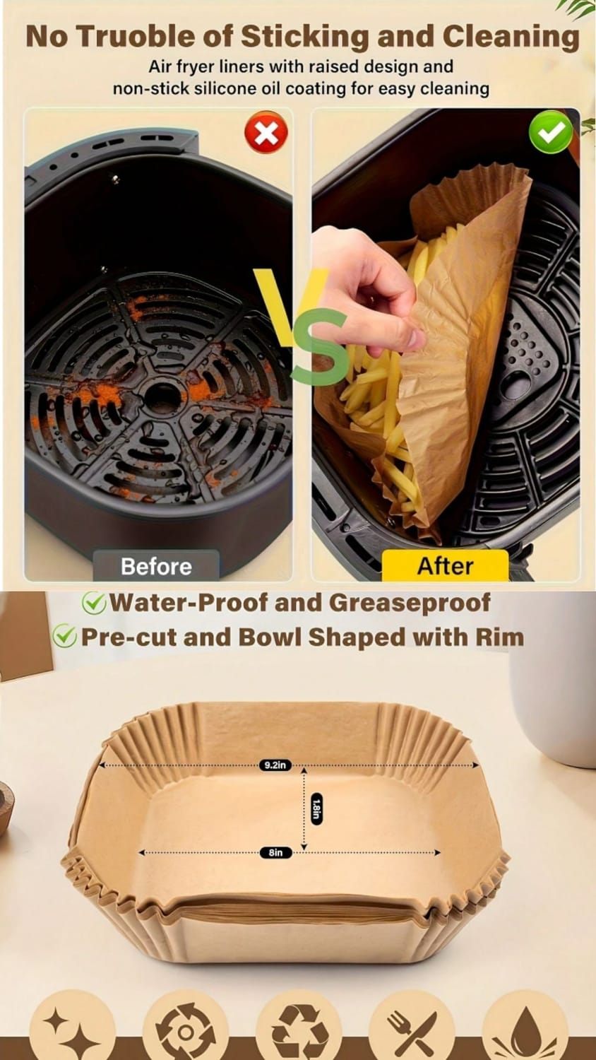 50 tapetes de papel para freidora de aire, tapetes desechables para microondas y freidora de aire, tapetes antiadherentes para freidora de aire.