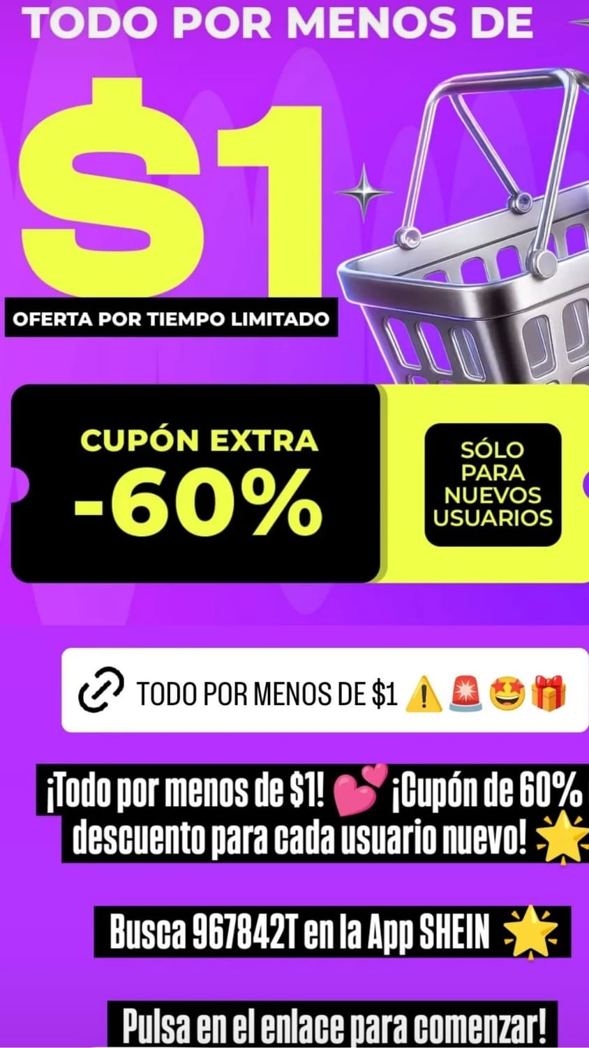 ¡Todo por menos de $1! 💕¡Cupón de 60% de descuento para cada usuario nuevo! 🌟 Busca 967842T en la App SHEIN o 🌟 Pulsa en el enlace para comenzar!